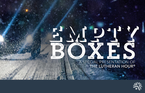 “Empty Boxes” is a special presentation of The Lutheran Hour®. Hosted by Lutheran Hour Speaker Rev. Dr. Michael Ziegler, this original story invites listeners on a chilly car ride home after a candlelight Christmas Eve service that becomes a turning point for a teenage boy—an enlightening moment he will return to for years to come.